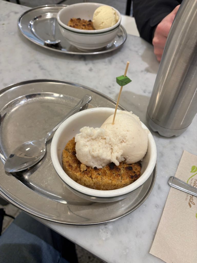 Despite the hearty falafel boxes just consumed, we managed to also polish-off sizeable Apple Crumble and ice-cream 😋